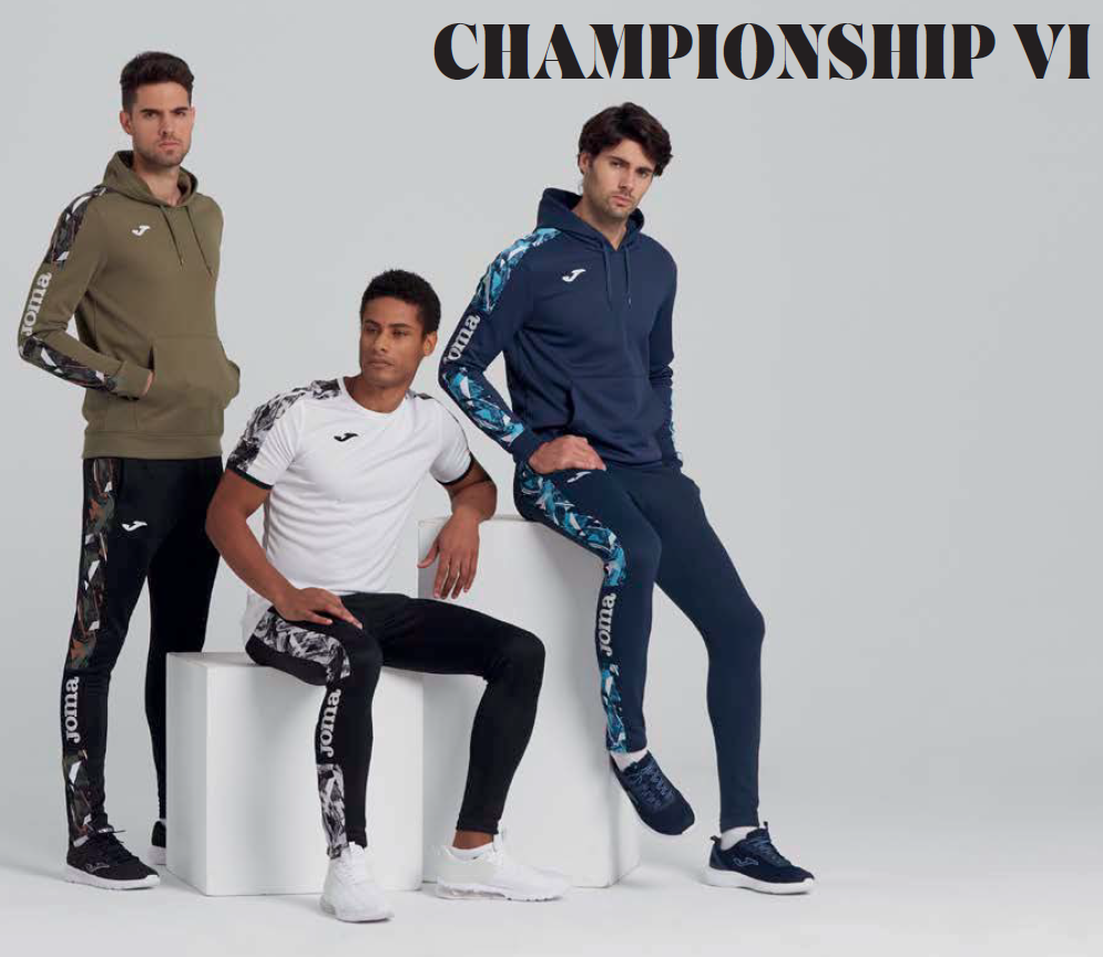 Tepláky JOMA CHAMPIONSHIP VI 101548.104 s novým dizajnom, sú špičkové tepláky určené hlavne, ako tímové oblečenie na tréning a zápas.